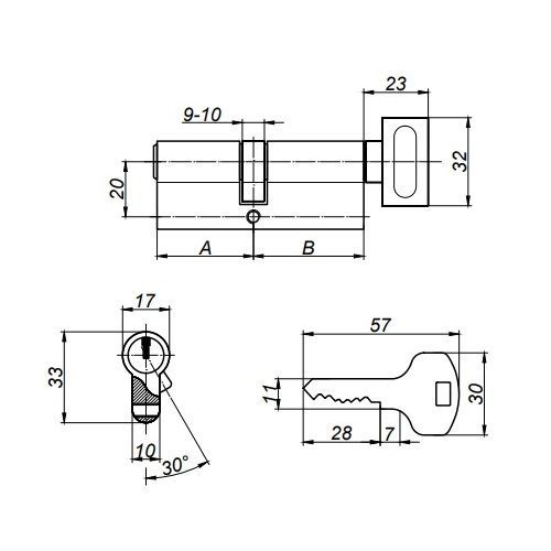 - Типоразмер цилиндра, расположение вертушки - 30/30 вертушка;