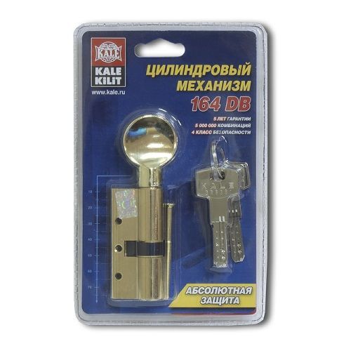Цилиндровый механизм с вертушкой серии 164 DBM-E повышенной секретности имеет 4 (высший) класс безопасности. Гарантия завода-изготовителя 5 лет. 10 латунных комбинативных пинов обеспечивают 5 000 000 комбинаций. Секретные пины грибовидной формы позволяют противостоять открытию методом подбора секретного код. Защитные стержни выполнены из высокопрочной стали, защищающей механизм от разрушения методом высверливания. Специальные стальные пластины, проходящие через тело цилиндра предотвращают излом и вырывание цилиндра. Тип ключа: перфорированный. Исполнение: ключ-вертушка. Комплектация: 5 латунных ключей, крепежная фурнитура. Размер: 70 (30+10+30) мм. Цвет: латунь.