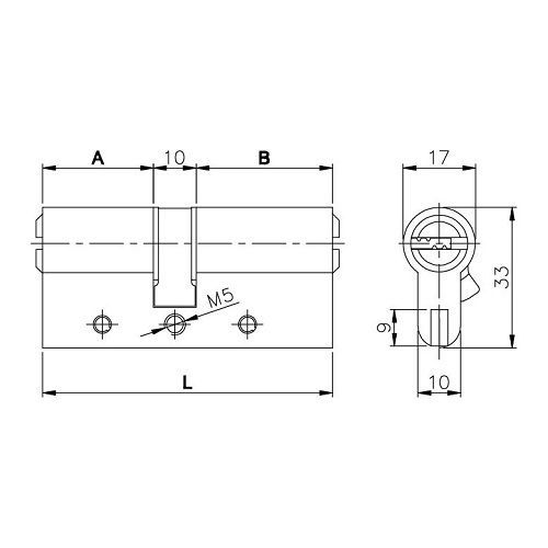 Цилиндровый механизм серии 164 DBN-E повышенной секретности имеет 4 (высший) класс безопасности. Гарантия завода-изготовителя 5 лет. 10 латунных комбинативных пинов обеспечивают 5 000 000 комбинаций. Секретные пины грибовидной формы позволяют противостоять открытию методом подбора секретного код. Защитные стержни выполнены из высокопрочной стали, защищающей механизм от разрушения методом высверливания. Специальные стальные пластины, проходящие через тело цилиндра предотвращают излом и вырывание цилиндра. Тип ключа: перфорированный. Исполнение: ключ-ключ. Комплектация: 5 латунных ключей, крепежная фурнитура. Размер: 80 (30+10+40) мм. Цвет: латунь.