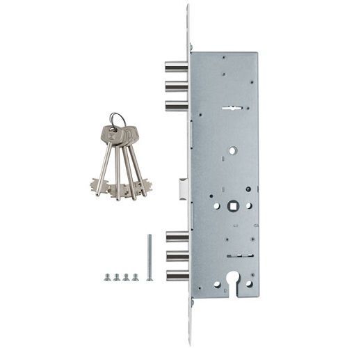 ЗВ 15.12 - Замок врезной двухсистемный, с длинным ключом. Два механизма секретности, верхний сувальдный, нижний цилиндровый. Реверсивная защелка, переворот защелки осуществляется без разбора замка. Возможность установки броненакладки на цилиндровый механизм. Защита от наиболее распространенных методов вскрытия: защита от вскрытия отмычкой - ложные пазы на стойке и сувальдах, увеличенная жесткость пружин сувальд; защита от "свертыша" - ослабленный зуб рейки хвостовика. Замок предназначен для установки в металлические и деревянные двери, шкафы и сейфы.