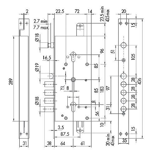 | Бэксет (удаление ключевого отверстия) | 64 мм |