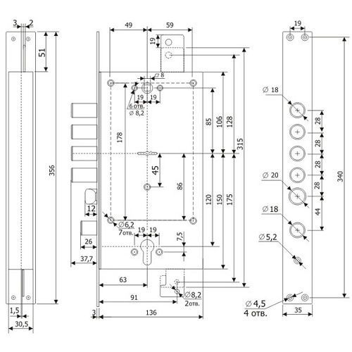 Замок врезной сувальдный с защелкой ЗВ 2512 Т (с планкой, 5 длинных ключей) предназначен для установки в металлические двери, шкафы и сейфы (подходит как для дверей правого, так и левого открывания). Защита от наиболее распространенных методов вскрытия: отмычки - ложные пазы на стойке и сувальдах, увеличенная жесткость пружин сувальд; "свертыша" - ослабленный зуб рейки хвостовика; высверливания - закаленная стойка рейки хвостовика; взлома - усиленная конструкция засовов. Переворот защелки выполняется без разборки замка. Может устанавливаться с вертикальным приводом для запирания двери на три стороны. Секретность (количество комбинаций сувальдных замков) - более 2 млрд.