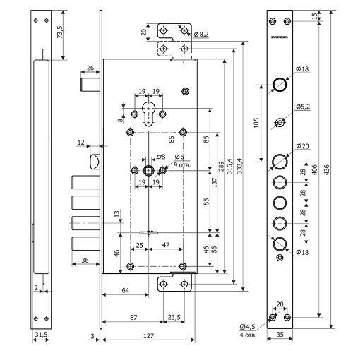 | Вылет ригеля | 36 мм |