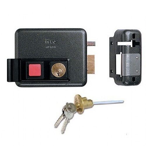 Электромеханический накладной замок Iseo 511310605 (правый, наружный), используется как в роли обычного накладного механического замка, так и в роли электромеханического варианта при подключении напряжения 12 V. Снаружи замок открывается ключом. Кнопку отрывания можно заблокировать с помощью внутреннего цилиндрового механизма, что позволяет устанавливать Iseo 511310605 на решетчатых конструкциях. В замке Iseo реализована "функция открытой двери", которая подключается нажатием кнопки выхода и одновременным поворотом ключа до полной блокировки. Производство Италия.