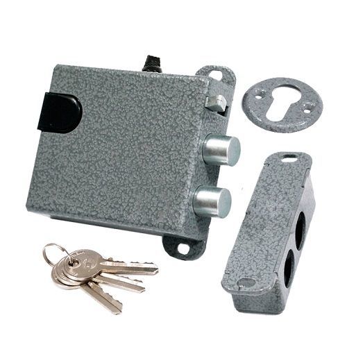 Замок электромеханический накладной с блокировкой в открытом состоянии. Цвет покрытия: серый