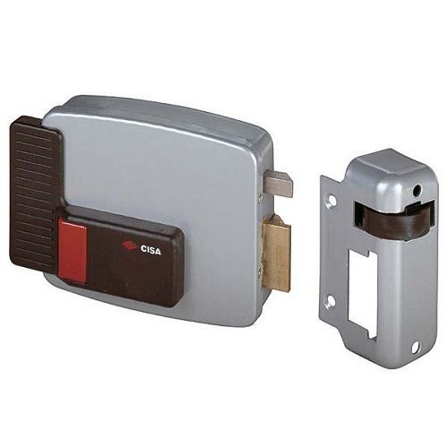 Замок накладной Cisa (Чиза) электромеханический 11.610.3 (дверь правая, открывается наружу) для правых дверей наружнего открывания. Снаружи цилиндр, внутри кнопка.