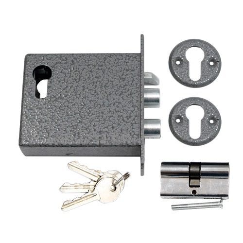 Замок электромеханический врезной, изнутри и снаружи ключ. Цвет покрытия: серый