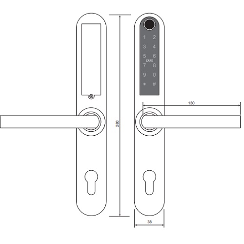 Предназначен для установки в деревянные и металлические двери. Универсальный вариант для жилых и коммерческих помещений (офисы, рестораны, гостиницы). Широкий диапазон толщины дверного полотна от 40 до 110 мм. Варианты открывания двери: с помощью пароля (до 150 шт.) IC-картой (до 200 шт.); отпечатком пальца (до 200 шт.); механическим ключом; через приложение по Bluetooth. Допустимая рабочая температура – от -10 С до +55 С. Допускается эксплуатация при влажности до 90 %