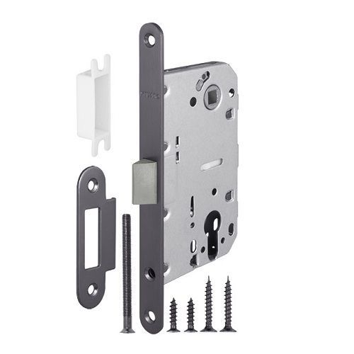 Корпус врезного замка Fuaro P85C серии PLASTIC с пластиковым механизмом изготовлен в соответствии с требованиями ГОСТ 5089-2003. Предназначен для установки в деревянные межкомнатные двери. Легкая смена направления язычка защелки, подходит для дверей левого и правого открывания. Корпус выполнен из стали с надежным гальваническим покрытием. Ударопрочный пластиковый механизм обеспечивает бесшумность работы защелки. Защелка P85C с усиленной пружиной имеет высший 4 класс надежности (250 000 циклов открывания/закрывания). Отверстия под стяжные винты находятся на расстоянии 38 мм. Размер бэксета - 50 мм. Размер межосевого расстояния - 85 мм. Возможна установка дверных ручек на стяжные винты для более прочного крепления. Цвет: графит. В комплектацию входят: ответная планка и крепежная фурнитура в цвет изделия.