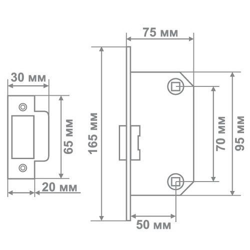 Межкомнатная защелка МЕДИО BAT 7050 square (квадрат) SN никель