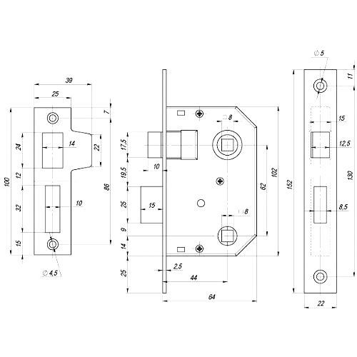Межкомнатный врезной замок 251 сантехнический. Количество ригелей 1. Бексет 44мм. Межосевое расстояние 62мм. Диаметр ригелей, 12мм.