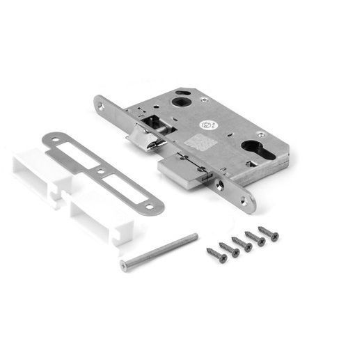Классические межкомнатные замки и защёлки. Размеры корпуса идеальны для установки с дверными ручками на розетке в комплекте с накладкой на цилиндр или сантехническим фиксатором. Металлический язычок обеспечивает надежное запирание. Угол нажатия ручки: 30 градусов. Стойкое покрытие подходит для использования во влажных помещениях (ванная комната). Межосевое расстояние: 85 мм (евроцилиндр) / 90 мм (сувальдный) / 90 мм (фиксатор WC). 250 000 циклов безотказной работы. Соответствие ГОСТу подтверждено сертификатом. Лучший выбор для тех, у кого защитные свойства межкомнатных замков стоят на первом месте.