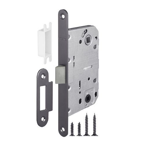 Дверная защелка с пластиковым механизмом Fuaro серии PLASTIC изготовлена в соответствии с требованиями ГОСТ 5089-2003. Предназначена для установки в деревянные межкомнатные и сантехнические двери. Легкая смена направления язычка защелки, подходит для дверей левого и правого открывания. Корпус выполнен из стали с надежным гальваническим покрытием. Ударопрочный пластиковый механизм обеспечивает бесшумность работы защелки. Защелка с усиленным блоком пружин имеет высший 4 класс надежности (250 000 циклов открывания/закрывания). Отверстия под стяжные винты находятся на расстоянии 38 мм. Размер бэксет - 50 мм. Размер межосевого расстояния - 96 мм. Возможна установка дверных ручек на стяжные винты для более прочного крепления. Цвет: графит. В комплектацию входят: ответная планка и крепежная фурнитура в цвет изделия.