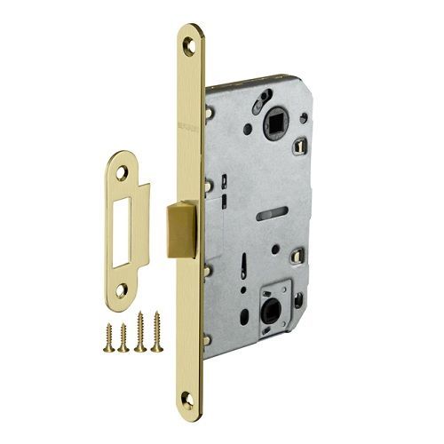 Дверная защелка с пластиковым механизмом Fuaro серии PLASTIC изготовлена в соответствии с требованиями ГОСТ 5089-2003. Предназначена для установки в деревянные межкомнатные и сантехнические двери. Легкая смена направления язычка защелки, подходит для дверей левого и правого открывания. Корпус выполнен из стали с надежным гальваническим покрытием. Ударопрочный пластиковый механизм обеспечивает бесшумность работы защелки. Защелка с усиленным блоком пружин имеет высший 4 класс надежности (250 000 циклов открывания/закрывания). Отверстия под стяжные винты находятся на расстоянии 38 мм. Размер бэксет - 50 мм. Размер межосевого расстояния - 96 мм. Возможна установка дверных ручек на стяжные винты для более прочного крепления. Цвет: матовое золото. В комплектацию входят: ответная планка и крепежная фурнитура в цвет изделия.
