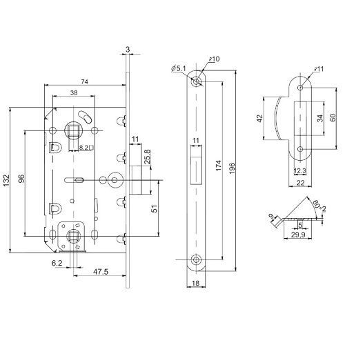 Защелка врезная Punto (Пунто) PL96WC-50 SN (Мат.никель) /81628/ предназначена для установки в деревянные межкомнатные и сантехнические двери. Легкая смена направления язычка защелки, подходит для дверей левого и правого открывания. Корпус выполнен из стали. Ударопрочный пластиковый механизм обеспечивает бесшумность работы защелки. Защелка PL-96WC имеет высший 4 класс надежности (250 000 циклов открывания/закрывания). Отверстия под стяжные винты находятся на расстоянии 38 мм. Размер бэксета - 50 мм. Размер межосевого расстояния - 96 мм. Возможна установка дверных ручек на стяжные винты для более прочного крепления. Цвет: матовый никель.