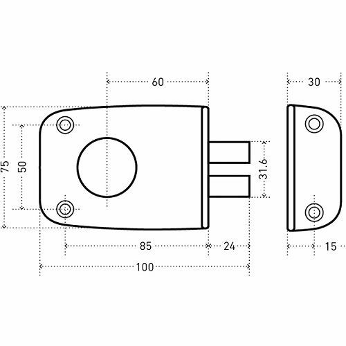 Замок накладной цилиндровый с вертушкой. Предназначен для установки на деревянные двери. Засов из двух цилиндрических ригелей диаметром 12 мм, с максимальным вылетом 24 мм. Удаление ключевого отверстия (без учета торцевой планки замка) - 55 мм, с торцевой планкой - 60 мм. Габариты замка - 100 х 75 х 18 мм. Комплектация - 5 ключей, запорная планка, накладка. Механизм замка под англ.ключ, идет совместно с корпусом. Закрывание и открывание замка изнутри производится вертушкой, снаружи ключом. Совпадает по посадочным отверстиям с замком ЗН1-1Д Казань.