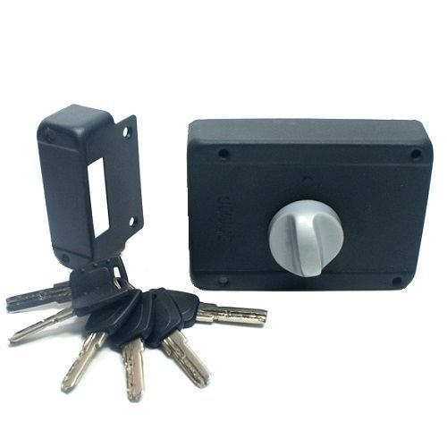 Замок накладной цилиндровый с вертушкой. Предназначен для установки на деревянные двери. Засов из трех цилиндрических ригелей диаметром 14 мм, с максимальным вылетом 24 мм. Удаление ключевого отверстия - 63 мм. Габариты замка - 123 х 87 х 31 мм. Комплектация - 6 ключей, запорная планка, накладка. Механизм замка под профильный ключ, идет совместно с корпусом. Закрывание и открывание замка изнутри производится вертушкой, снаружи ключом.