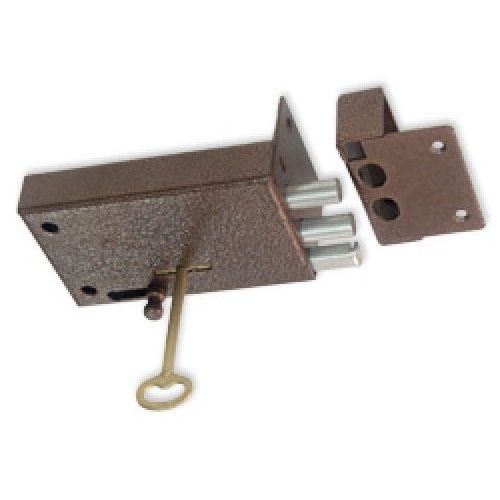 Замок накладной двухригельный с задвижкой, 6 сувальдный, четыре оборота ключа, открывается с двух сторон ключом, 2 цилиндрических ригеля диаметр и выход ригелей 14х32 мм. Удаление ключевого отверстия (Backset): 60 мм. Ключей: 3 шт. Точек запирания: 1. Способ запирания изнутри: Ключом. Задвижка блокирует замок.