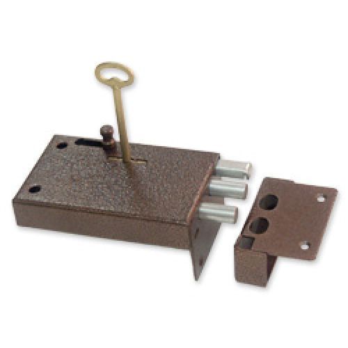 Замок накладной Гюрал ЗН 4-3 правый двух ригельный, шести сувальдный, с задвижкой, четыре полуоборота ключа, открывается с двух сторон ключом диаметр и выход ригелей 12х23 мм. Тип ригелей: Цилиндрические. Количество ригелей: 2. Защелка: Отсутствует. Удаление ключевого отверстия (Backset): 60 мм. Тип механизма секретности: Сувальдный. Количество ключей: 5 шт. Количество точек запирания: 1. Способ запирания изнутри: Ключом. Цвет корпуса: Бронзовый антик.