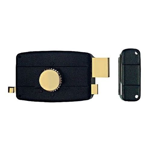 Накладной замок с вертушкой для деревянных и металлических дверей с одним ригелем и защёлкой. Цилиндровый механизм с пятью пинами на внешней стороне и двумя на внутренней. Расстояние от планки до центра цилиндра 60мм. 3 ключа.