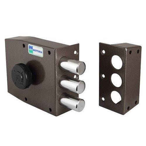 Замок накладной MOTTURA 30.401 S (левый) (3 ригеля) с нажимным цилиндром диаметром 34мм., с одной точкой запирания.Открытие изнутри ручкой. Удаление ключевого отверстия 63мм. Ход засовов 36мм.