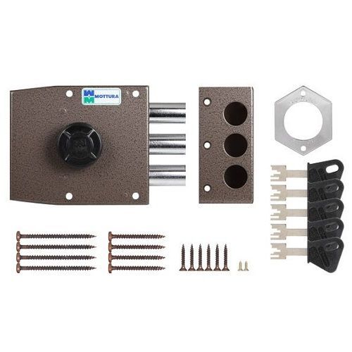 Замок накладной MOTTURA 30.401 D (правый) (3 ригеля) с нажимным цилиндром диаметром 34мм., с одной точкой запирания.Открытие изнутри ручкой. Удаление ключевого отверстия 63мм. Ход засовов 36мм.