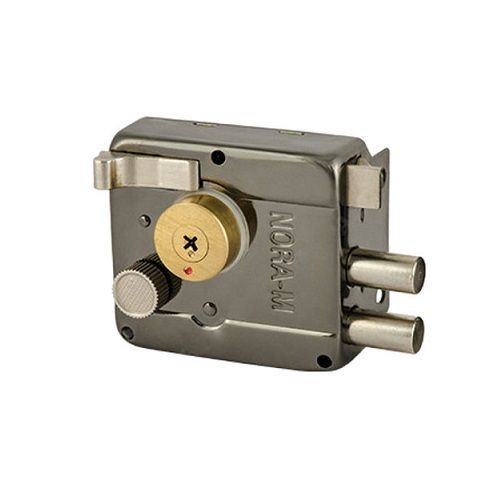 Замок накладной Нора-М 11B. Материал изготовления - углеродистая сталь высокого качества, ключи и механизмы секретности замка - из латуни. Материал сталь; Кол-во ключей 5; Модификация ключ/ключ; Тип ригелей круглый; Кол-во ригелей 2. Комплектуется 5 ключами.