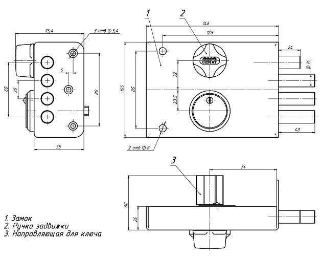 Замок накладной СЕНАТ ЗНС3-6 "Сибиряк" сувальдный с задвижкой. Предназначен для установки на металлические двери. Замок имеет засов из трех цилиндрических ригелей диаметром 16 мм, с максимальным вылетом 30 мм, и задвижку диаметром 16 мм. Удаление ключевого отверстия - 76 мм. Количество полуоборотов ключа - 4. Габариты замка - 146 х 105 х 26 мм. С внутренней стороны замок может закрываться на задвижку. Защита от вскрытия замка отмычкой, защита от высверливания стойки ригеля и защита от вскрытия свертышем. 4-го класса взломостойкости.