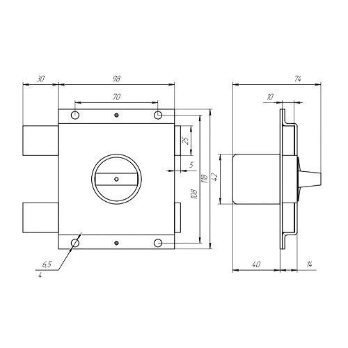 Замок накладной ТОЛЬЯТТИ цилиндровый, повышенной секретности. Простая конструкция позволяет устанавливать замок в любой тип дверей: деревянную, стальную, открывающуюся на левую или правую сторону. Корпус замка и ригели выполнены из прочной стали. Лёгок в монтаже и эксплуатации. Изнутри замок запирается ручкой, ее можно оставить в любом положении, при этом всегда есть возможность открыть/закрыть замок ключом (нет блокировки "мертвых положений"). Имеет более четырёх миллиардов комбинаций ключа, четыре ряда по четыре штифта разной длины, устойчив к вскрытию отмычками. Четвёртый класс защиты. Два ригеля сечением 25х10 мм. Покрытие: полимерно-порошковое. Комплектация: замок, цилиндровый механизм, 5 трубчатых ключей. Длина ключа: 100 мм.