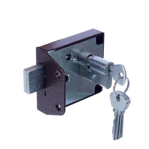 Замок накладной цилиндровый универсальной сторонности 2 класса . Предназначен для установки на деревянные двери толщиной 35-45мм. Замок запирается ключом снаружи и ручкой изнутри, имеет блокировку, которая предотвращает открывание дверей снаружи ключом ,число секретов не менне 15000. Размер бэксет 55 мм.