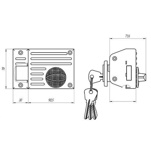 Замок накладной цилиндровый универсальной сторонности 2 класса . Предназначен для установки на деревянные двери толщиной 35-45мм. Возможна установка замка на металлические двери. Замок запирается ключом снаружи и ручкой изнутри,имеет блокировку,которая предотвращает открывание дверей снаружи ключом ,число секретов не менне 15000. Размер бэксет: 55 мм. Цвет: серебро.