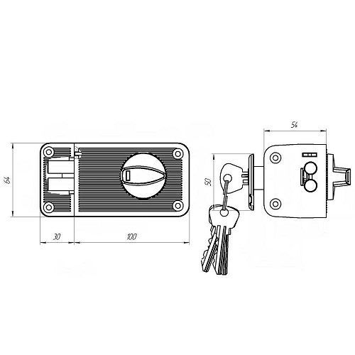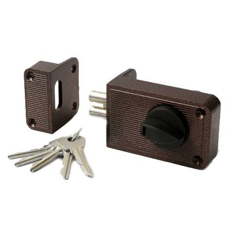 ЗН2-3 - накладной замок с цилиндровым пластинчатым механизмом секрета. Рекомендован для деревянных и металлических дверей. Имеется блокировка открывания двери ключом снаружи. Запирание замка происходит автоматически - без применения ключа. Два ригеля диаметром 11 мм. Материал корпуса - цинковый сплав. Комплектуется цилиндровым механизмом МЦ-1 и 5-ю ключами. Тип ключа - английский. Удаление ключевого отверстия (бэксет): 60 мм. Цвет: медь.