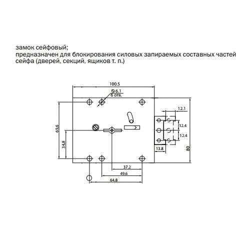 Замок сейфовый ЗС-8.1 класс А ГОСТ Р 51053-2012 предназначен для блокирования силовых запираемых составных частей сейфа (дверей, секций, ящиков и т.п.). Замок имеет более 250 000 неповторяющихся вариантов ключей. Дверь может быть закрыта на засов и открыта только с помощью ключа (в комплекте 2 шт.). Ключ может быть извлечен только в закрытом положении замка. Габариты замка указаны на чертеже. Производитель: ООО"БОРДЕР", Россия, г.Рязань.