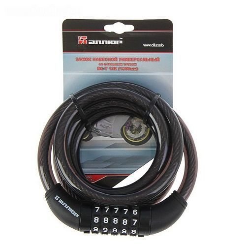 Замок кодовый со стальным тросом. Материал корпуса - сталь покрыта пластиком (12мм - диаметр, 1500мм - длина). Секретность: 5 кодовых ячеек по 10 цифр. Применяется для защиты велосипедов, мотоциклов, колясок; запирания ворот, хозяйственных и бытовых помещений. Первоначально на все замки установлен код 00000. Чтобы изменить код: 1. Откройте замок 2. На кодовой части с торца поверните кольцо в направлении, указанном стрелкой, на четверть оборота, до упора 3. Изменить кодовую комбинацию 4. Верните кольцо в начальное положение, повернув кольцо против часовой стрелки. Новый код установлен. Запомните его. Замки можно перекодировать сколько угодно раз.
