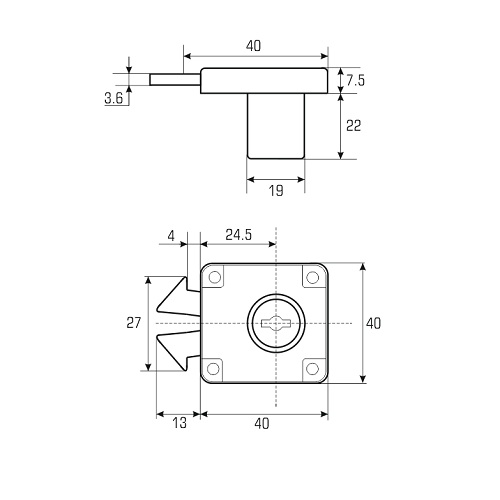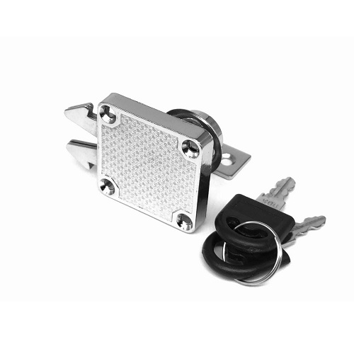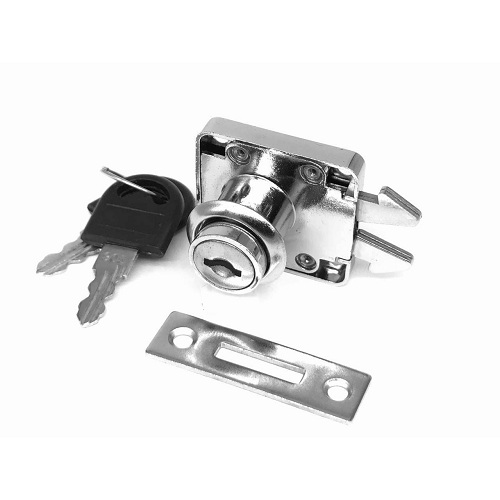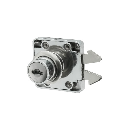 Мебельный замок 202 При повороте ключа двойной язычок сжимается, его размер становится меньше, чем размер отверстия накладной планки, и дверь легко открывается. Замок может фиксировать жалюзи в закрытом состоянии, установленные на мебельной конструкции.