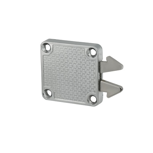 Используется для запирания шкафов-купе и раздвижных дверей двойной язычок, который при закрытии дверцы защёлкивается за края боковой планки.