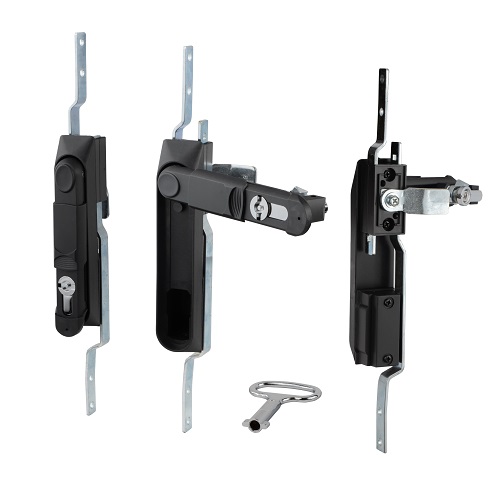 Замок мебельный щитовой с пластиковой ручкой . Устанавливаются на металлические шкафы. Благодаря ручке-трансформеру, которая компактно укладывается в закрытом режиме, замок выглядит эстетично и аккуратно. А дополнительная защитная пластина предотвращает попаданию загрязнений в замочную скважину. Фиксация выполняется в одной точке запирания, а также у данной модели предусмотрены механизм для установки дополнительных тяг. Таким образом, замок выполняет фиксацию в одной точке - при запирании только ригелем, двухточечную фиксацию - при запирании только тягами (сверху и снизу) и комплексную - в 3-х местах (ригель + 2 тяги). Все ключи у данной модели одинаковые, тип "бабочка", это значительно облегчает работу, и позволяет не иметь при себе лишние связки ключей.