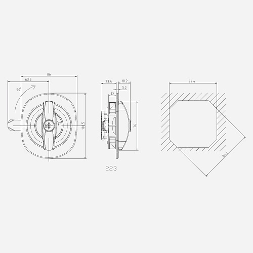 Размер посадочного отверстия: 84,1 х 72.4 мм;
