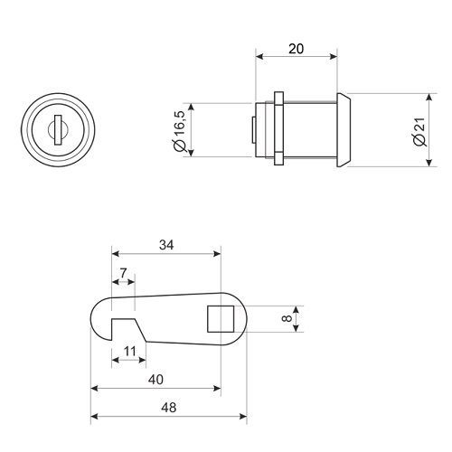 Длина врезной части - 20 мм, диаметр врезной части - 16,5 мм.