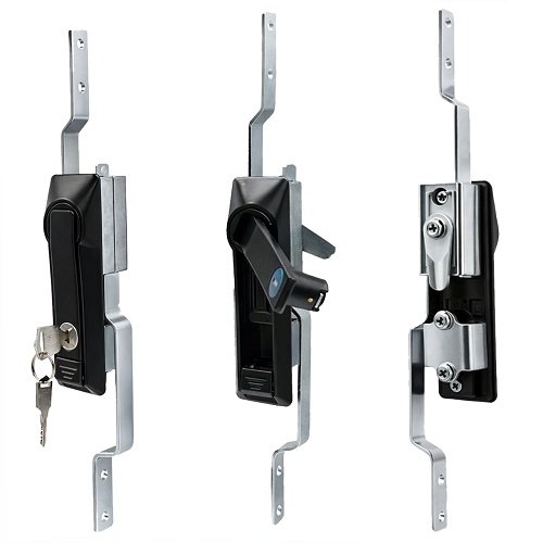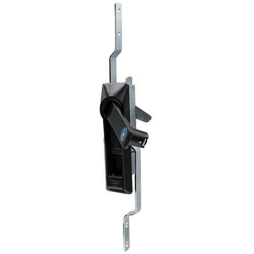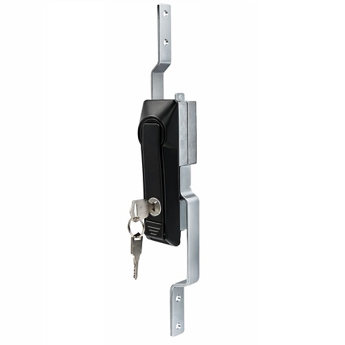 Замок MS463-2 с ручкой под тяги. Корпус замка и ручка изготовлены из высококачественного сплава ЦАМ, который имеет порошковое покрытие черного цвета, что обеспечивает защиту от внешней среды. Благодаря ручке, которая компактно укладывается в закрытом режиме, замок выглядит эстетично и не дает зацепиться за ручку и самопроизвольно открыть замок. В нижней части замка имеется кнопка "PUSH" при нажатии на которую в открытом положении замка, ручка откидывается автоматически.