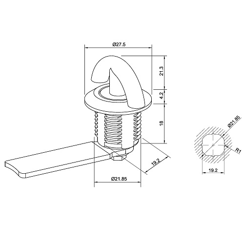 Щитовой замок серии 705 со встроенной ручкой. Имеет два уплотнительных резиновых кольца, внутреннее и внешнее. Внешнее резиновое уплотнительное кольцо, позволяет замку плотно прилегать к поверхности дверцы. Внутреннее уплотнительное кольцо не позволяет пыли и влаге проникать внутрь. Степень защиты замка IP66.