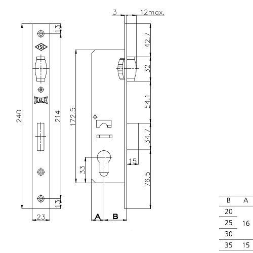Корпус замка врезного цилиндрового 155 с роликовой защелкой предназначен для узкопрофильных дверей. Корпус выполнен из оцинкованной стали, ригель из цинкового сплава, роликовая защелка из латуни. Ширина планки - 23 мм. Бэксет - 25 мм. Цвет: никель. Цилиндр в комплект не входит.