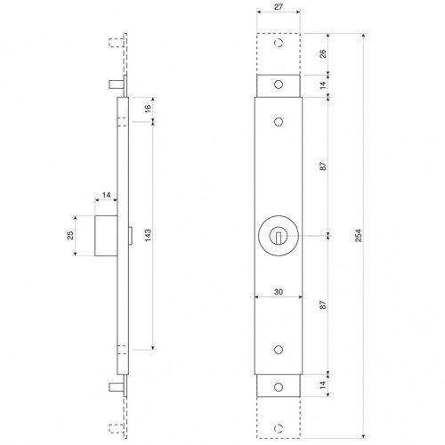 Замок для рольставен (другие названия - роллет, защитные жалюзи). В комплектацию входит: Цилиндровый механизм - 6-ти пиновый с профильным ключом, Фиксирующая пластина - 2 шт, Винты для фиксации пластины - 2шт, 3 ключа. Замок сделан из прочной стали толщиной - 2 мм. К замку крепятся два ригеля, которые в две стороны запирают рольставни.