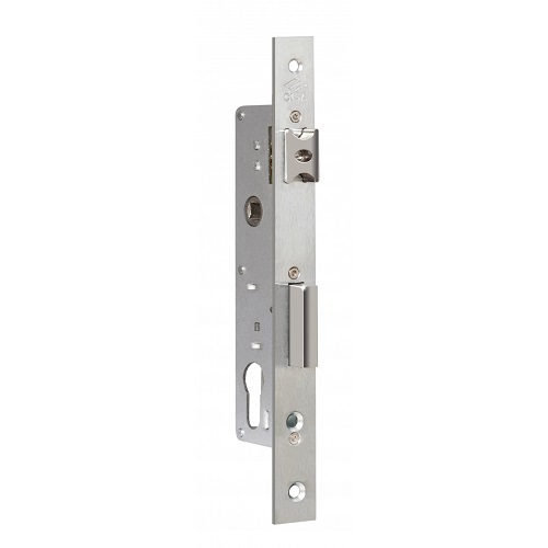 Корпус врезного узкопрофильного замка Cisa 44660.35.0 для установки в алюминиевые, пластиковые, узкопрофильные двери. Механизм секретности - цилиндровый механизм (не входит в комплект). Длина лицевой планки - 240 мм, ширина - 22 мм. Удаление ключевого отверстия от планки (Бэксет) - 35 мм. Межосевое расстояние - 85 мм. Замок реверсивный (универсальный) - направление защелки меняется путем перестановки.
