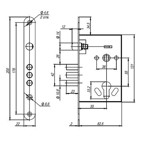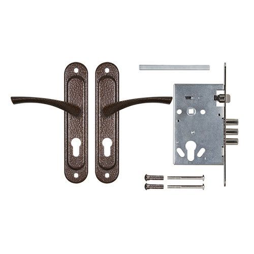 Комплектация : корпус замка, ручки на планке, квадрат под ручки (8х100мм), стяжные винты, винт для цилиндра, паспорт изделия.