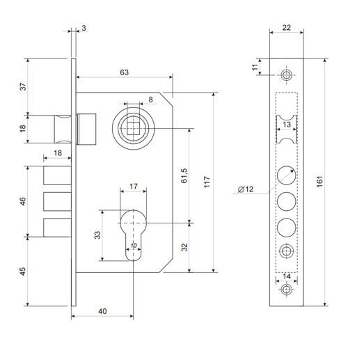 | Удаление ключевого отверстия (Backset) | 40 мм |