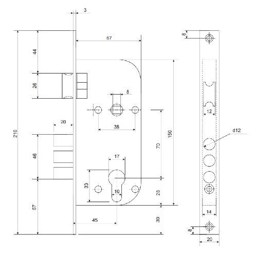 | Удаление ключевого отверстия (Backset) | 45 мм |