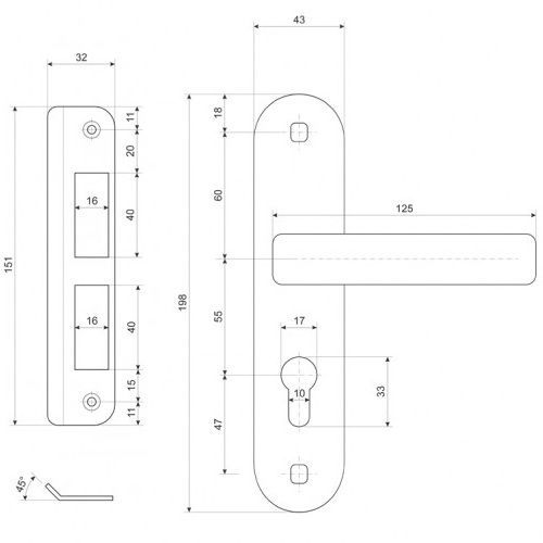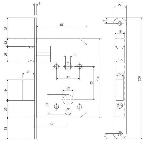 | Удаление ключевого отверстия (Backset) | 55 мм |