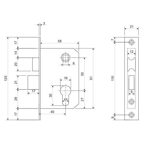 | Удаление ключевого отверстия (Backset) | 40 мм |