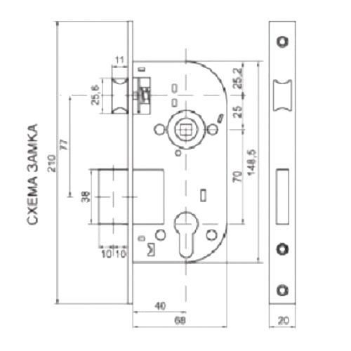 | Удаление ключевого отверстия (Backset), мм | 40 |